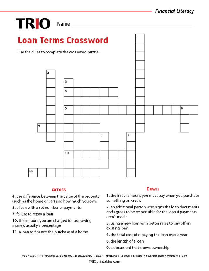 Loan Terms Crossword Activity Sheet TRIO Printables