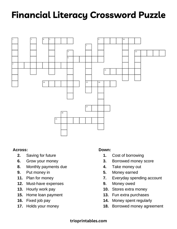 Financial Literacy Crossword Puzzle TRIO Printables