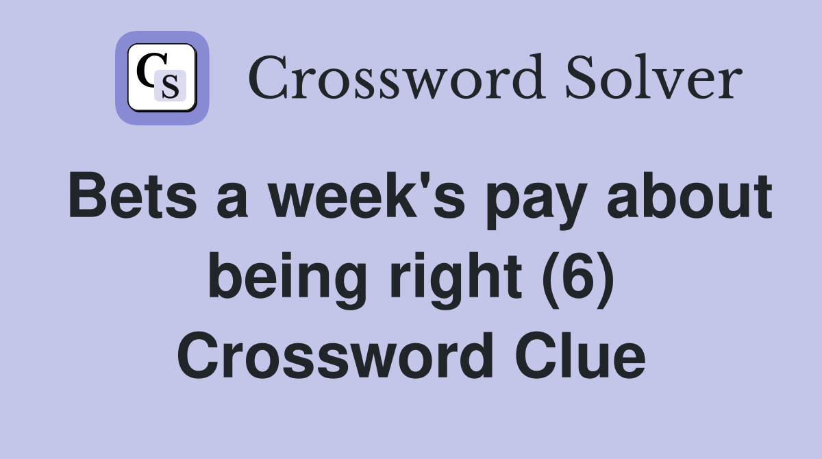 Bets a week #39 s pay about being right (6) Crossword Clue Answers