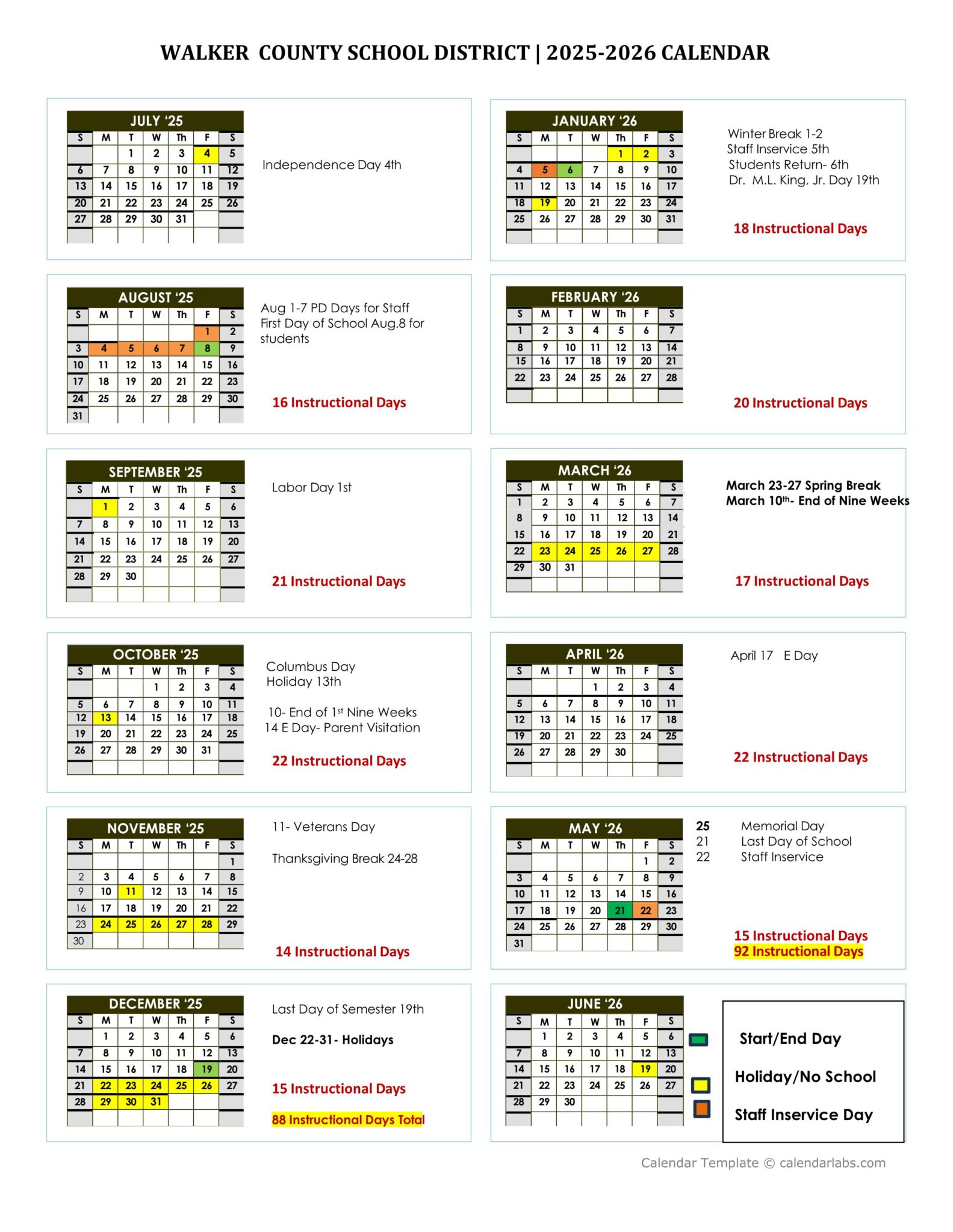 Walker County Schools 2025 Calendar Calculator Online Susan W Smith