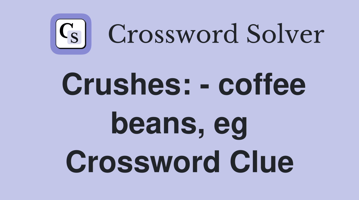 Crushes: coffee beans eg Crossword Clue Answers Crossword Solver