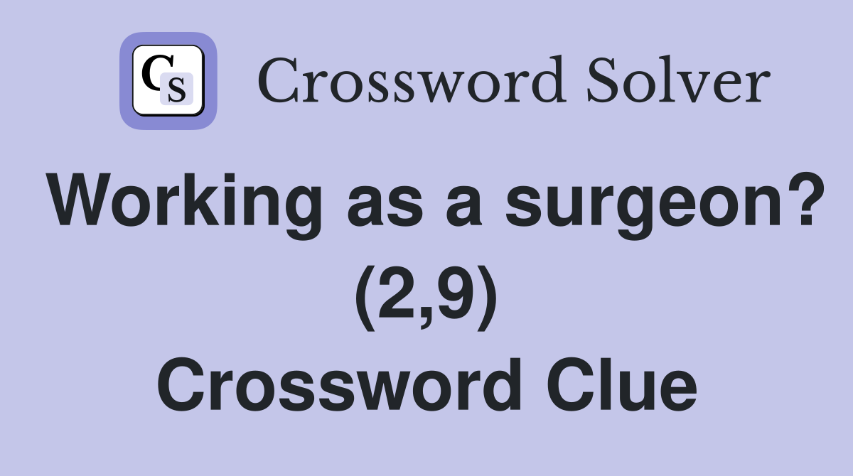 Working as a surgeon? (2 9) Crossword Clue Answers Crossword Solver