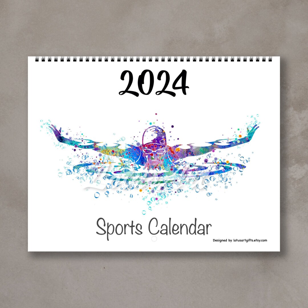 Wall Art Calendar 2024 Sports Wall Planner Decor Watercolor Print