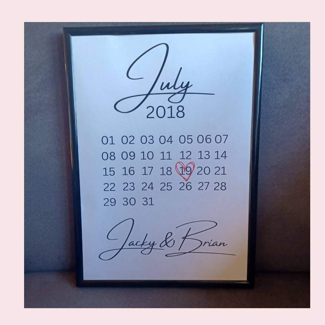 Anniversary Wall Art Calendar With Names Prison Wife Long Etsy