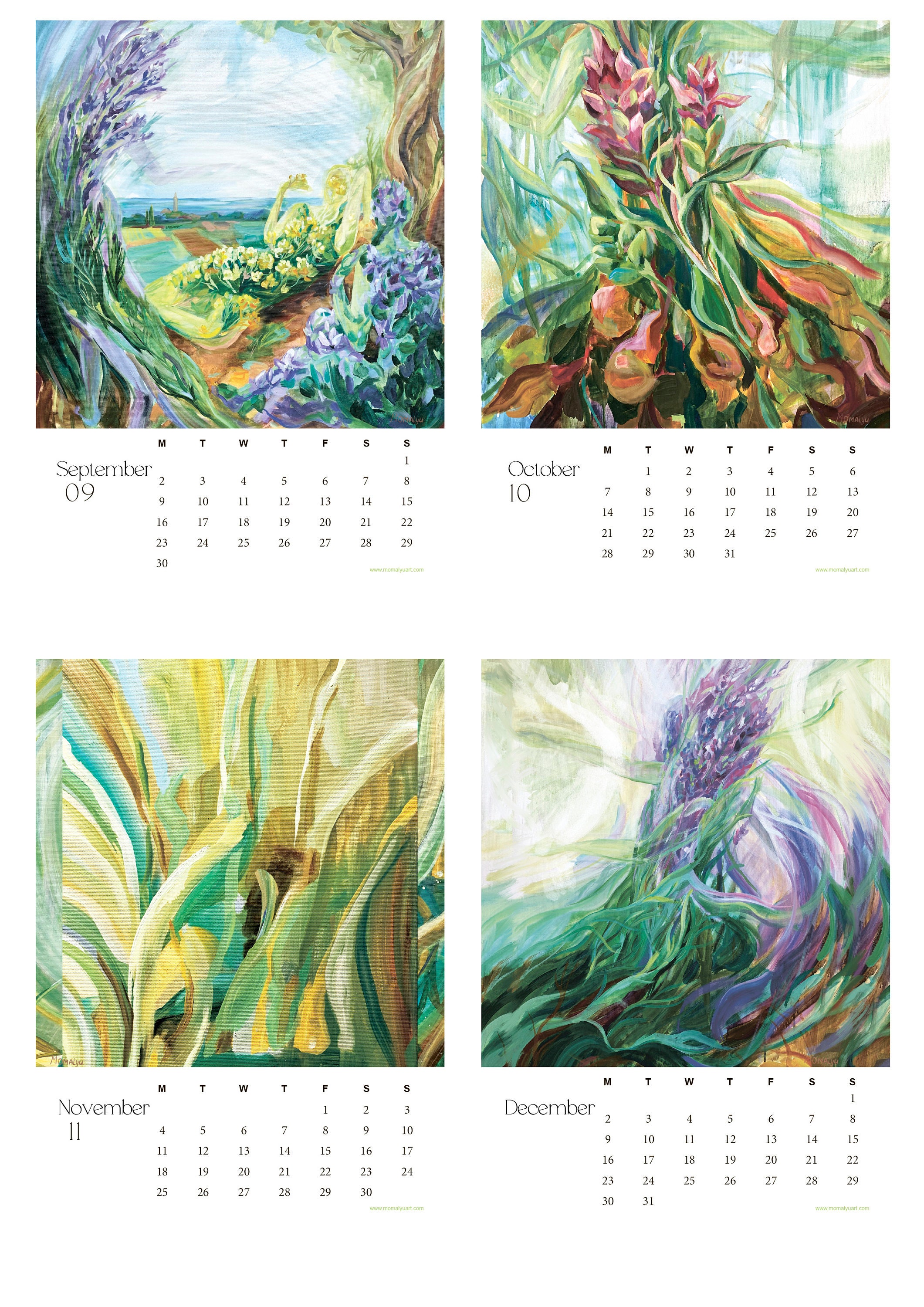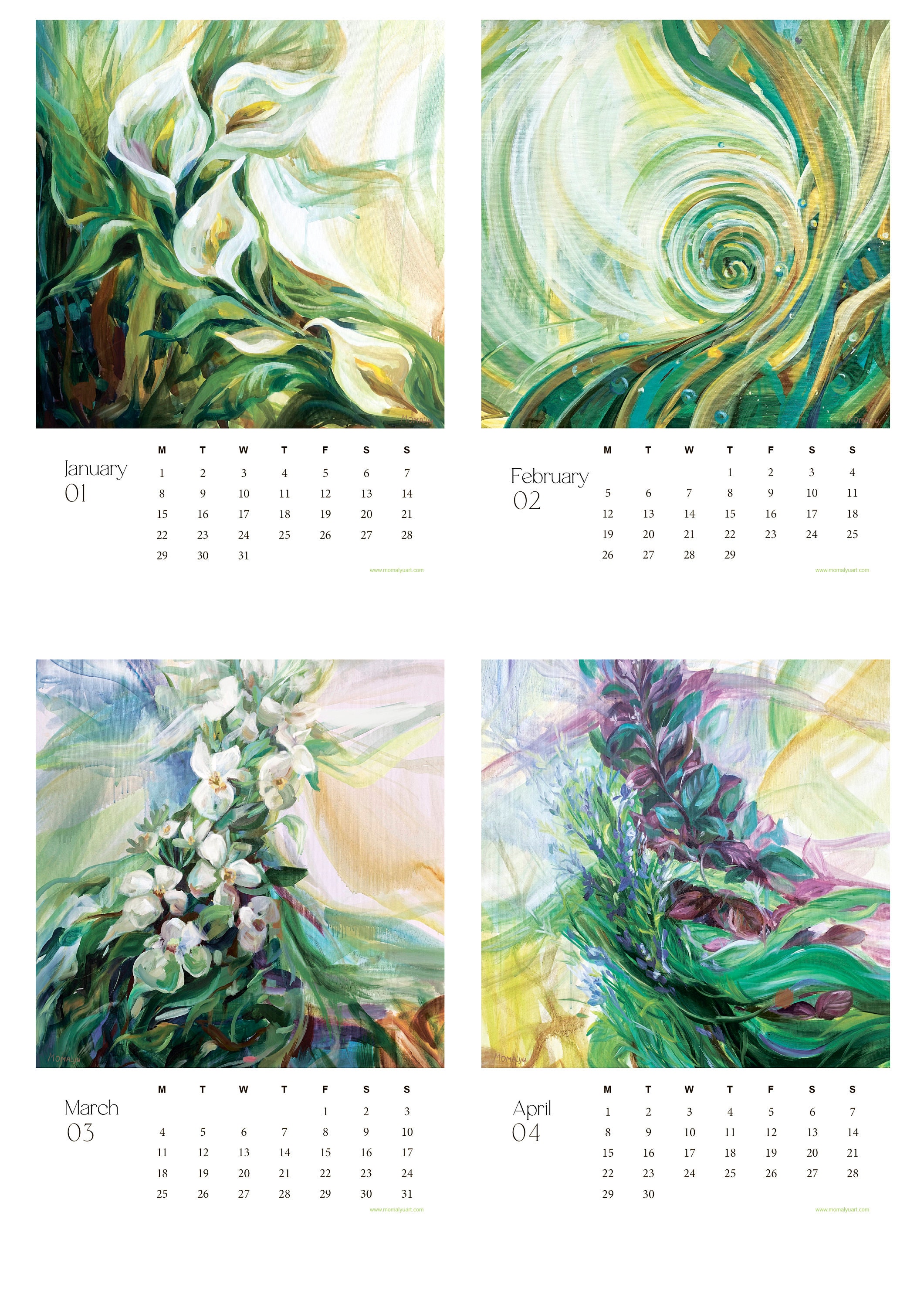 Floral Wall Art Calendar 2024 by Artist Starts on Monday Etsy