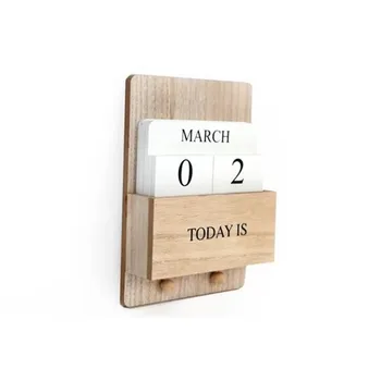 Wooden Block Perpetual Calendar With Hooks Wall Hanging Decoration