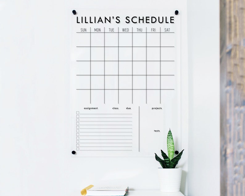 School Wall Calendar Homeschool Calendar Acrylic Dry erase Calendar