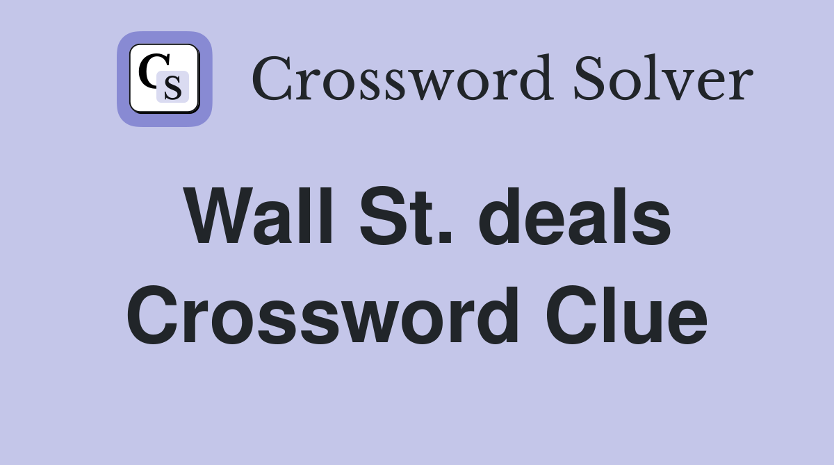 Here are some of the images for Wall St Deals Crossword Clue that we found in our website database.