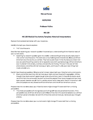 HIS 100 Module Five Activity Template Identify the topic you chose to