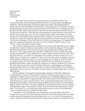 Intro sports management Manuel Nunez ENG Professor Lutz 05/29/ The