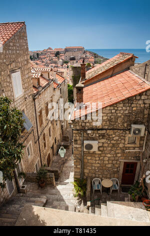 The beautiful steep alleys at the walled old town of Dubrovnik Stock