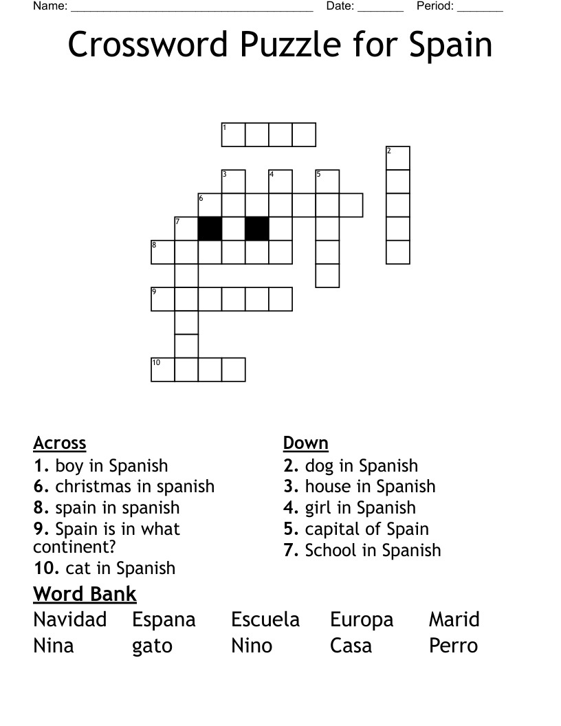 Spanish Crossword Puzzle WordMint Sally Crossword Puzzles