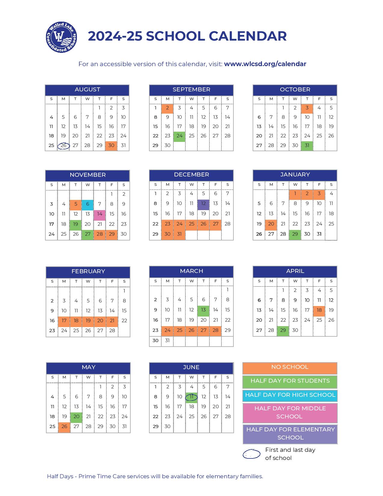 Walled Lake Schools Calendar 2024 2025 in PDF Download Now School