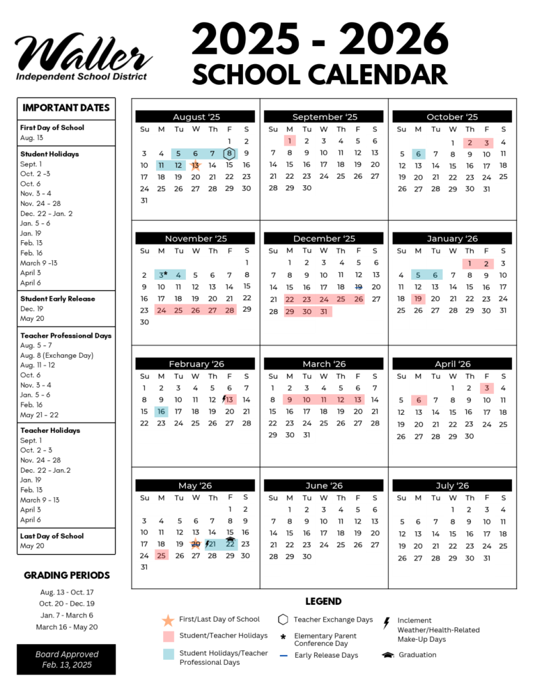 Waller ISD Calendar 2025 2026