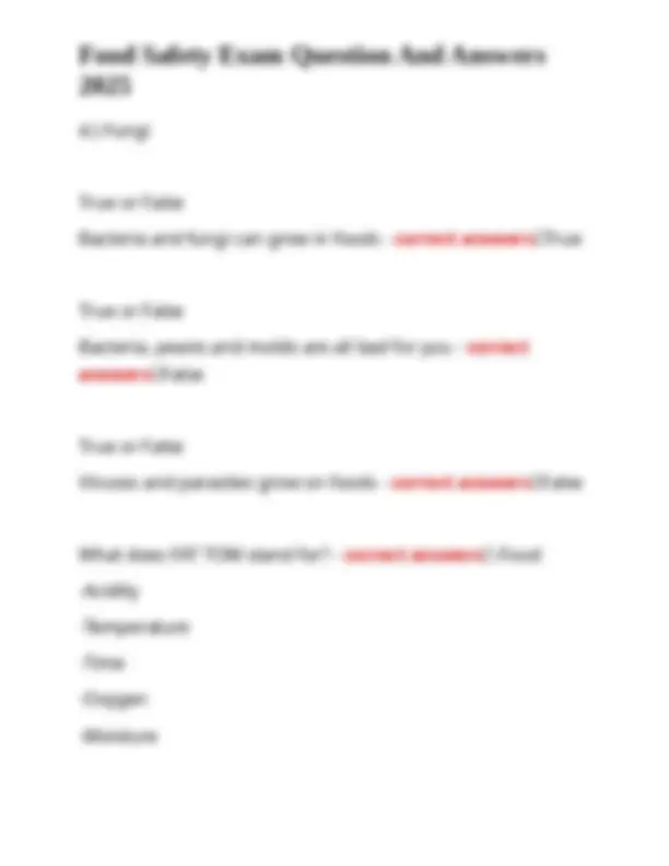 Food Safety Exam Question And Answers 2025 Exams Nursing Docsity