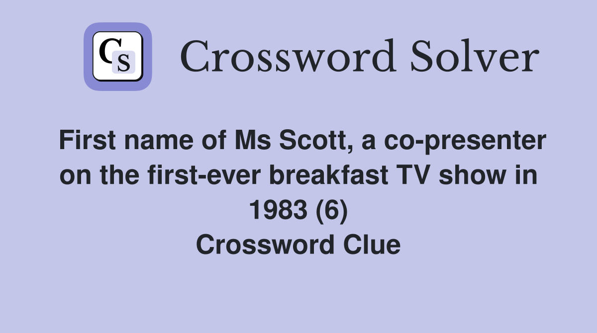 First name of Ms Scott a co presenter on the first ever breakfast TV