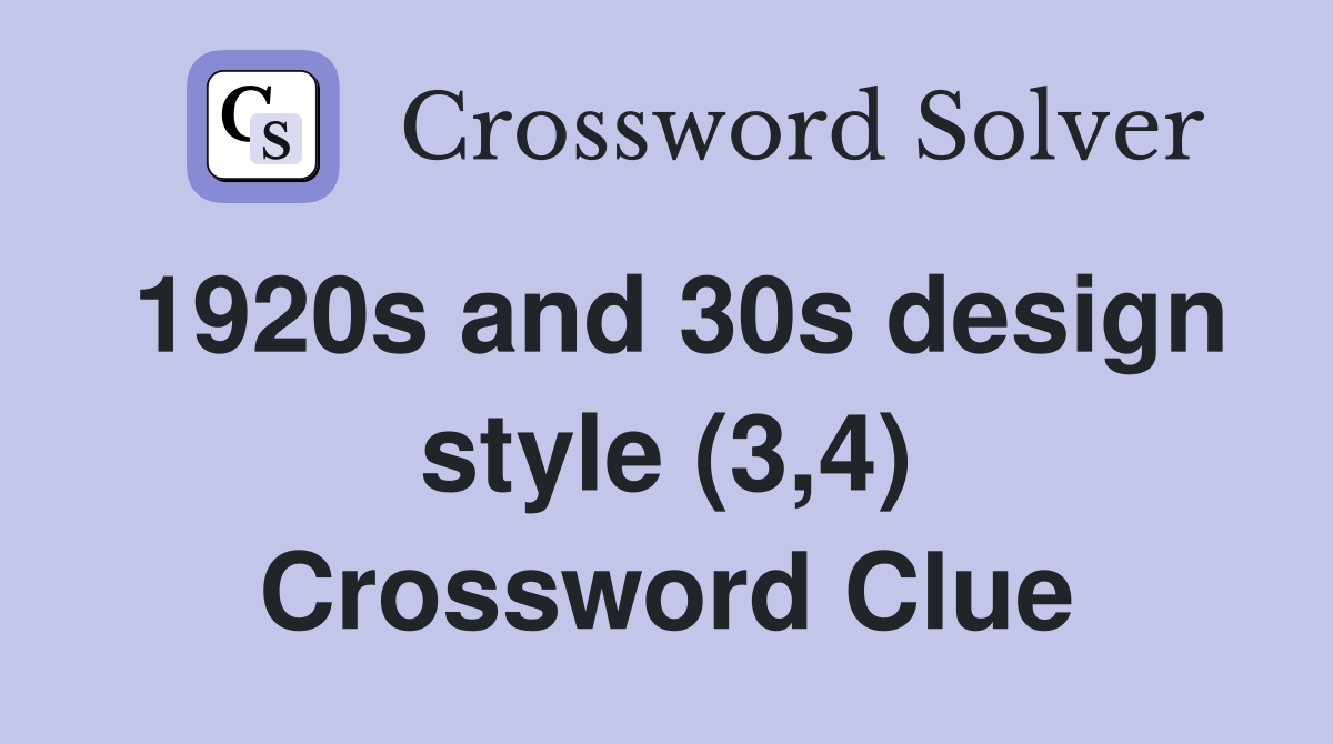 1920s and 30s design style (3 4) Crossword Clue Answers Crossword