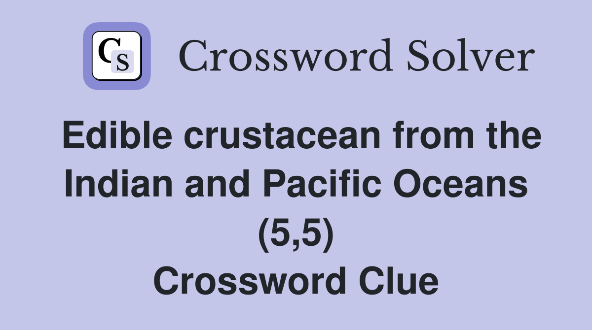 Edible crustacean from the Indian and Pacific Oceans (5 5) Crossword