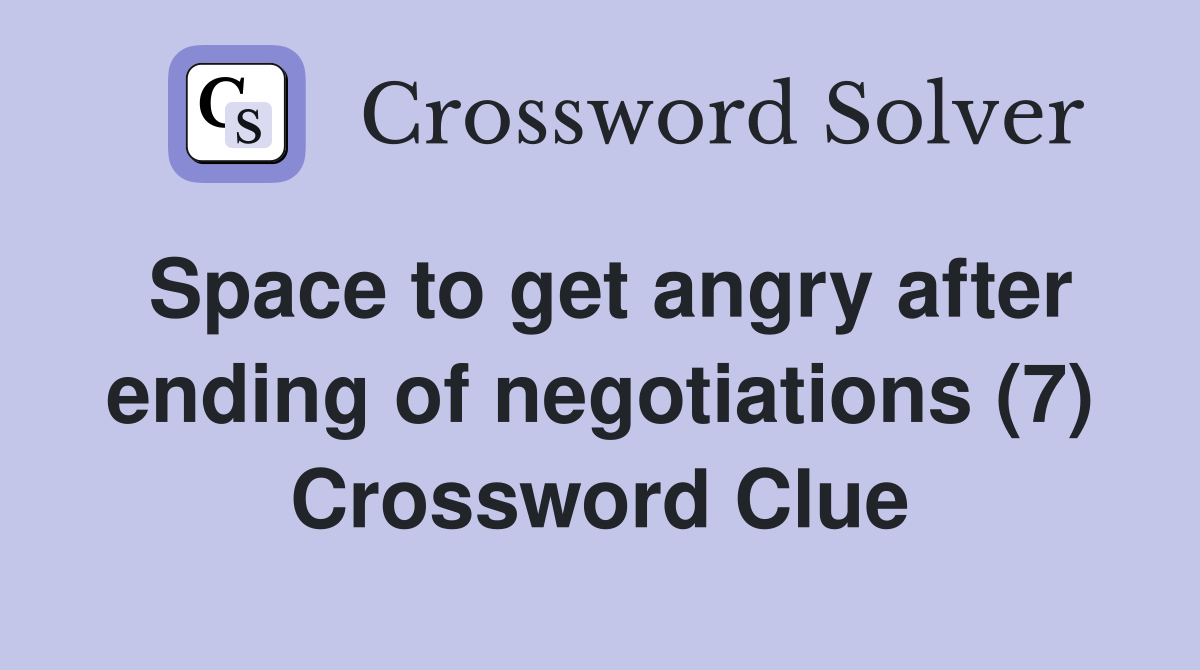 Space to get angry after ending of negotiations (7) Crossword Clue