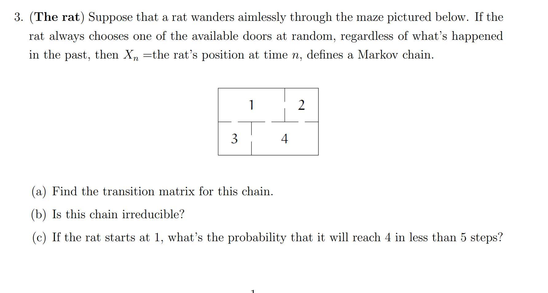 Solved (The rat) Suppose that a rat wanders aimlessly Chegg com