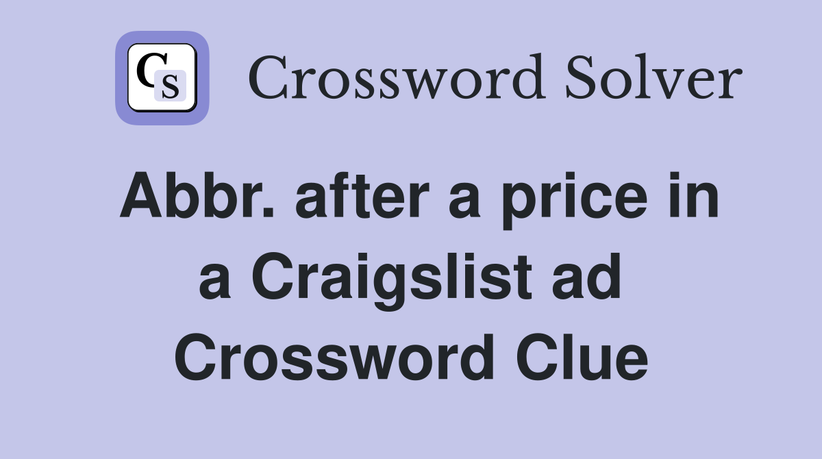 Abbr after a price in a Craigslist ad Crossword Clue Answers