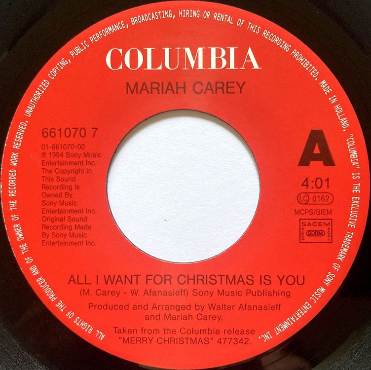 MARIAH CAREY ALL I WANT FOR CHRISTMAS IS YOU (Gebraucht) in Bottens
