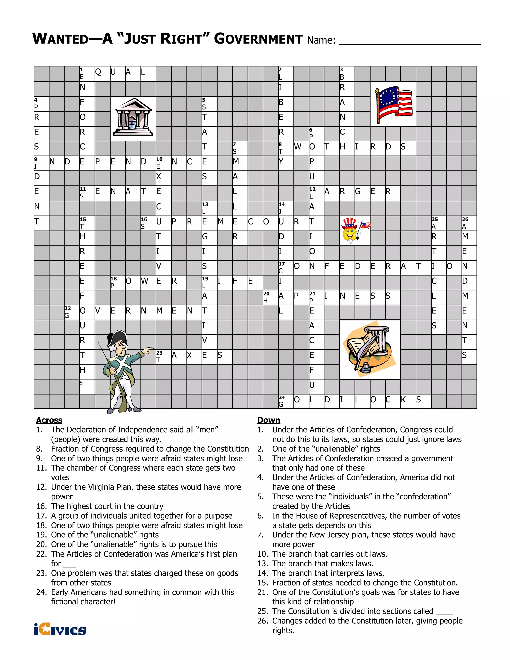 Fillable Online Wanted: A Just Right Government Worksheet Crossword