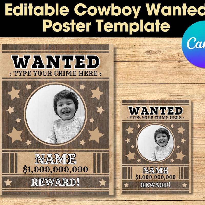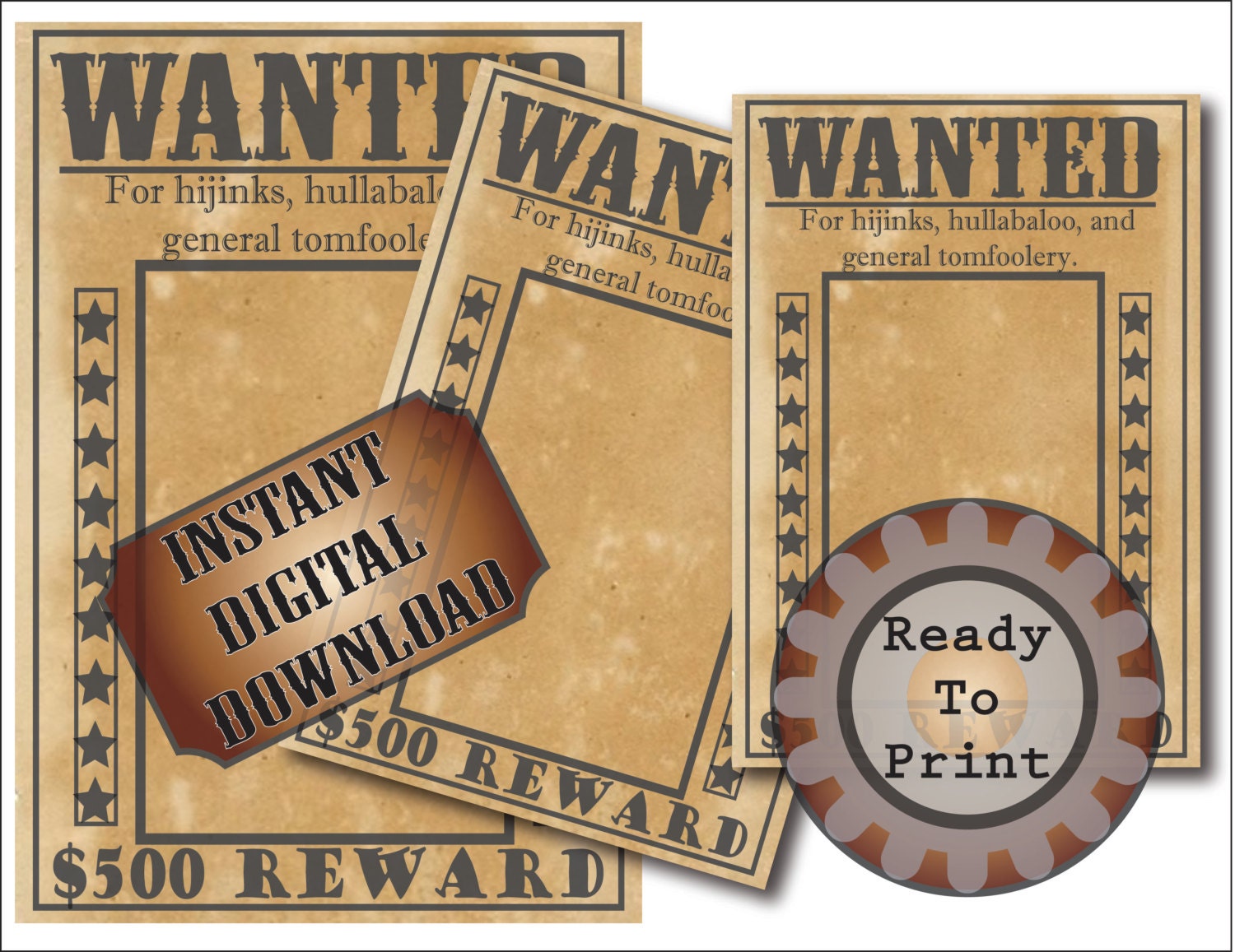 Old West Wanted Poster Printable Blank Photo Space Cowboy Etsy Canada