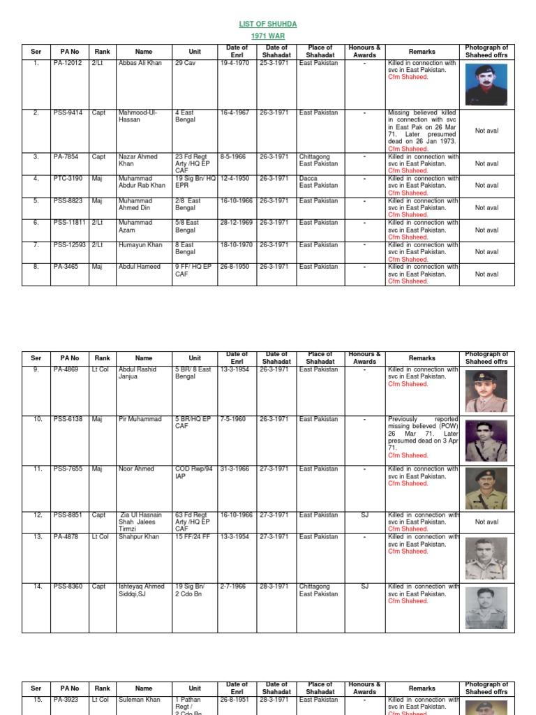 Pakistan Army Martyrs 1971 Indo Pak War PDF Pakistan South Asia