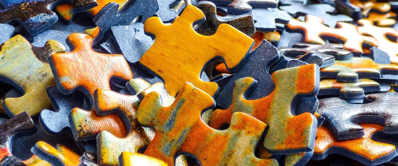 Colorful Puzzle Pieces Against a Warm Glowing Background Stock Photo