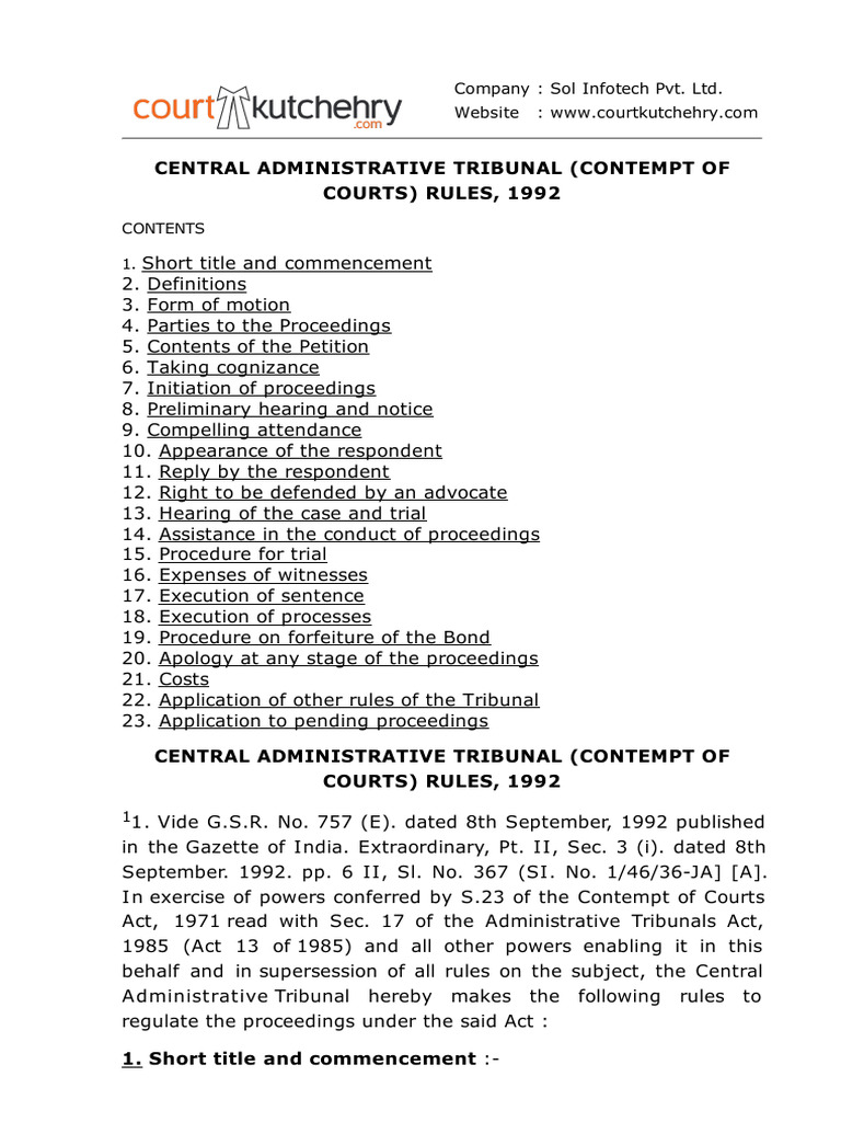 Central Administrative Tribunal (Contempt of Courts) Rules 1992 PDF
