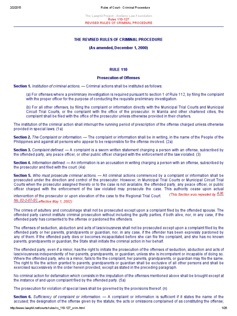 Rules of Court 110 127 PDF Bail Arrest Warrant