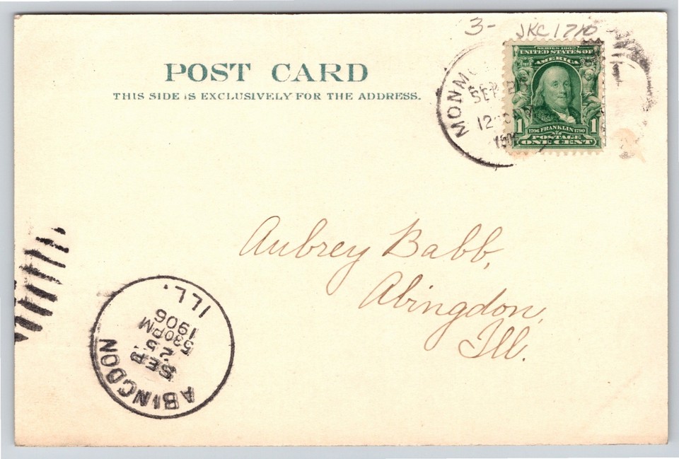 Monmouth Illinois~Warren County Court House~Blue Tint~Greetings~1906