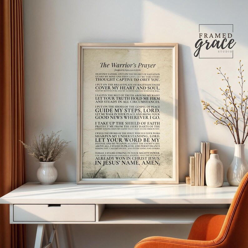 The Warriors Prayer Full Armor of God Christian Poster Printable Wall