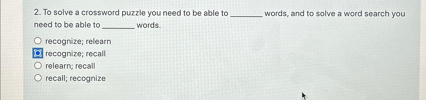 Solved To solve a crossword puzzle you need to be able to Chegg com