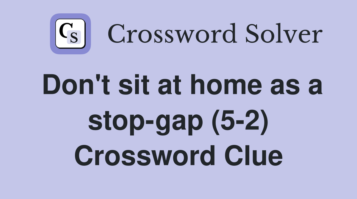 Don #39 t sit at home as a stop gap (5 2) Crossword Clue Answers