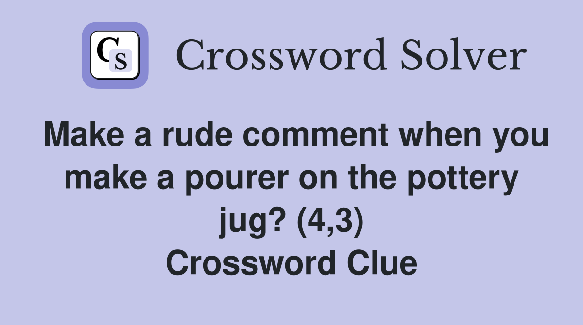 Make a rude comment when you make a pourer on the pottery jug? (4 3