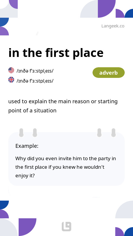 Definition Meaning of In the first place Picture Dictionary