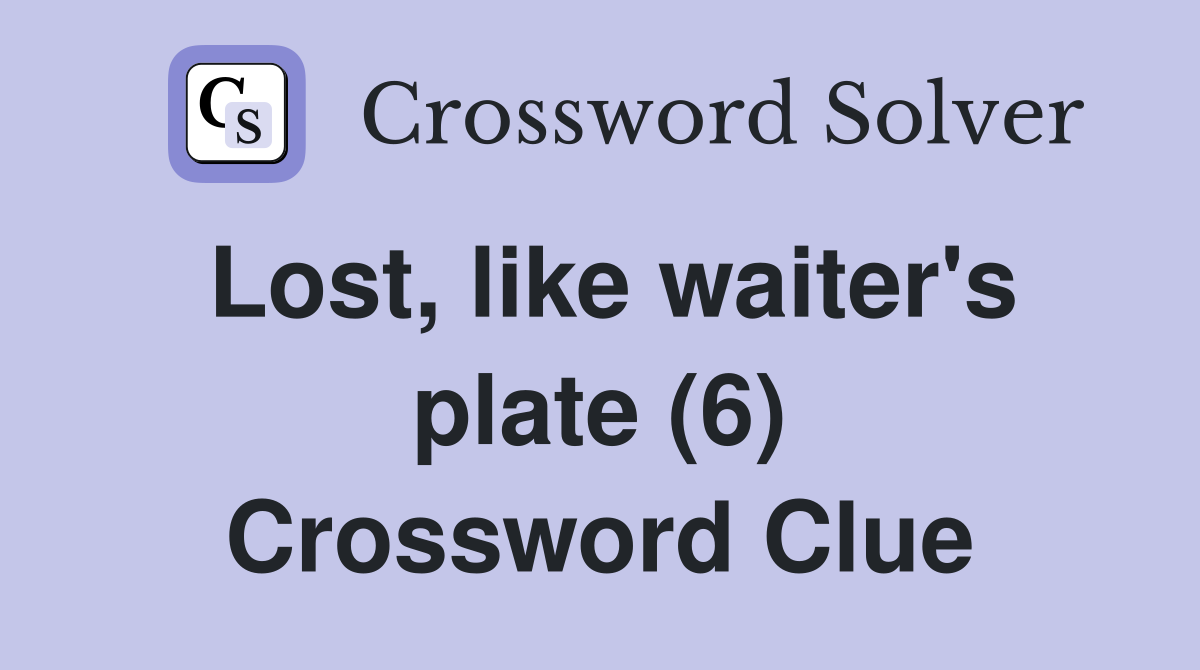 Lost like waiter #39 s plate (6) Crossword Clue Answers Crossword Solver