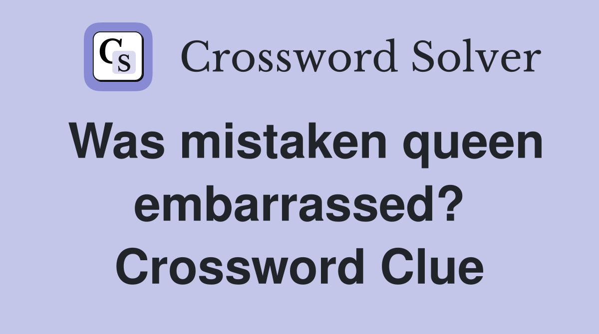 Was mistaken queen embarrassed? Crossword Clue Answers Crossword Solver