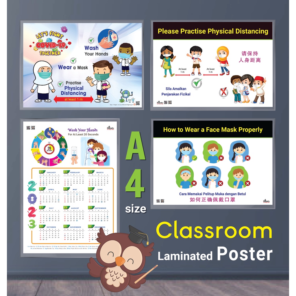Laminated Poster School Classroom Decor Wear Mask Wash Hand Hiasan