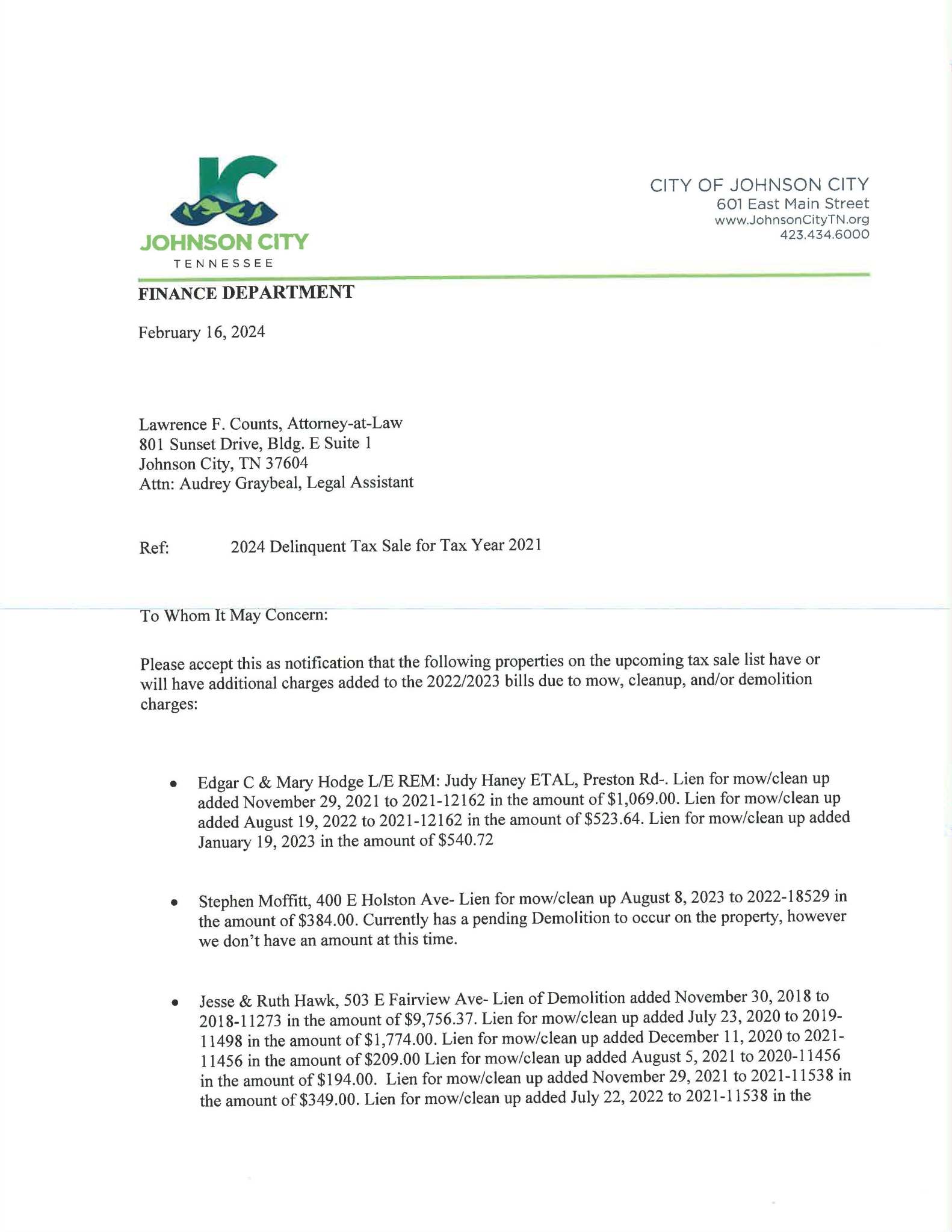 Tax Sale Notice in Johnson City Press Clerk and Master #39 s Office for