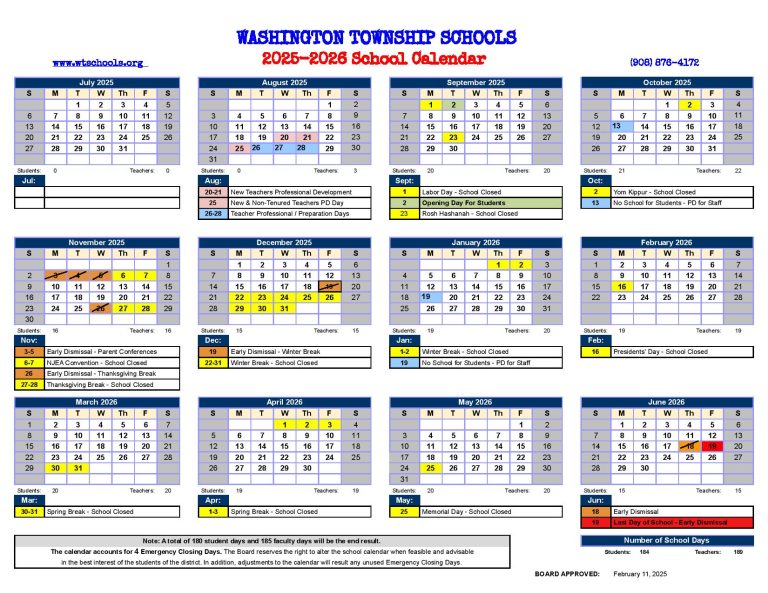 Washington Township Public School Calendar 25 26 Revised PDF EduCounty