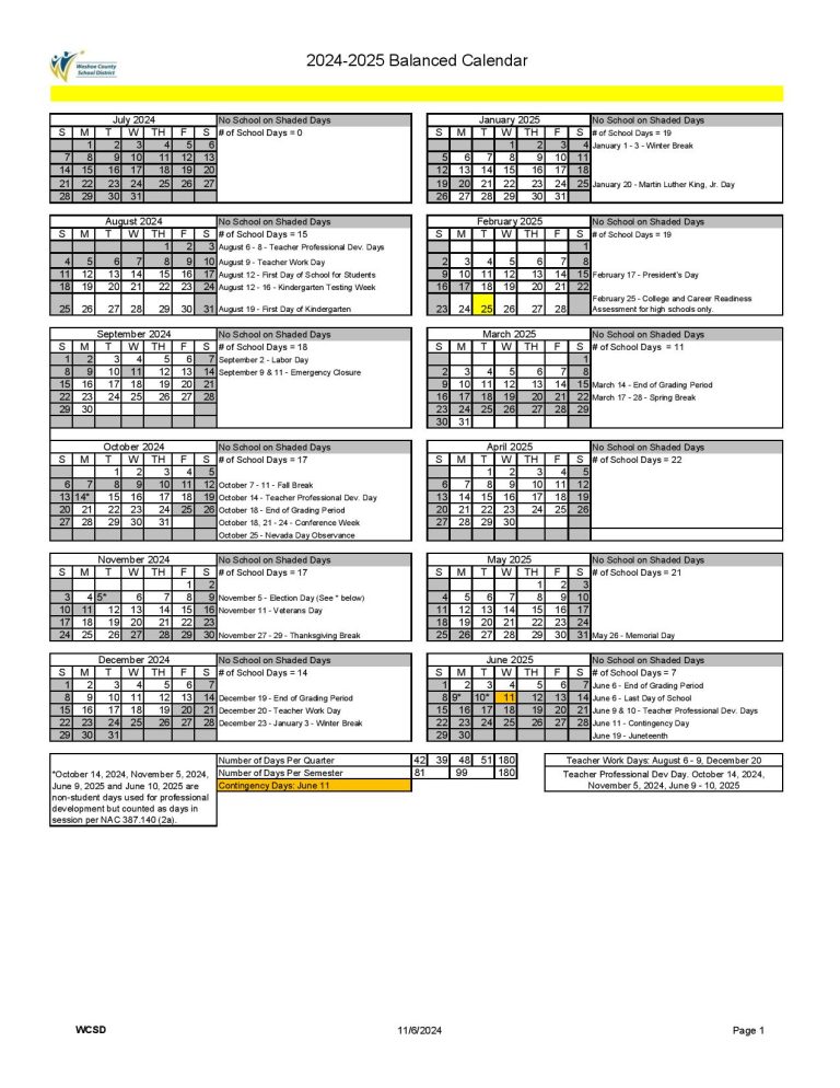Washoe County School District Calendar 2025 2026 Holidays