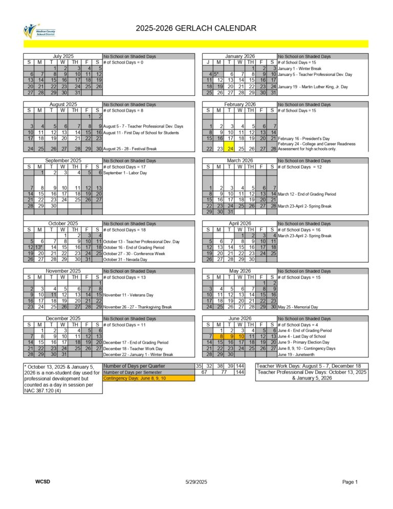 Washoe County School District Calendar 2025 2026 School Calendar Info