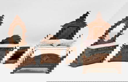 English Victorian Style Mirrored Washstand with Decorated Basin and