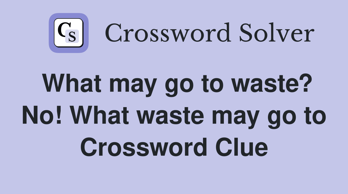 What may go to waste? No What waste may go to Crossword Clue Answers