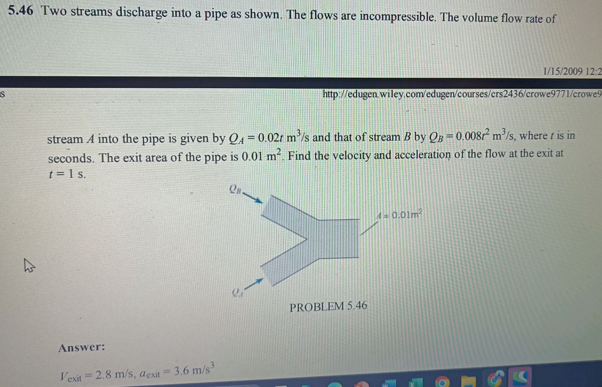 Solved 5 46 Two streams discharge into a pipe as shown The Chegg com