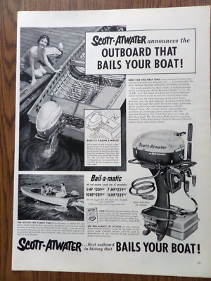 1954 Scott Atwater Boat Motor Ad The Outboard that Bails Your Boat eBay