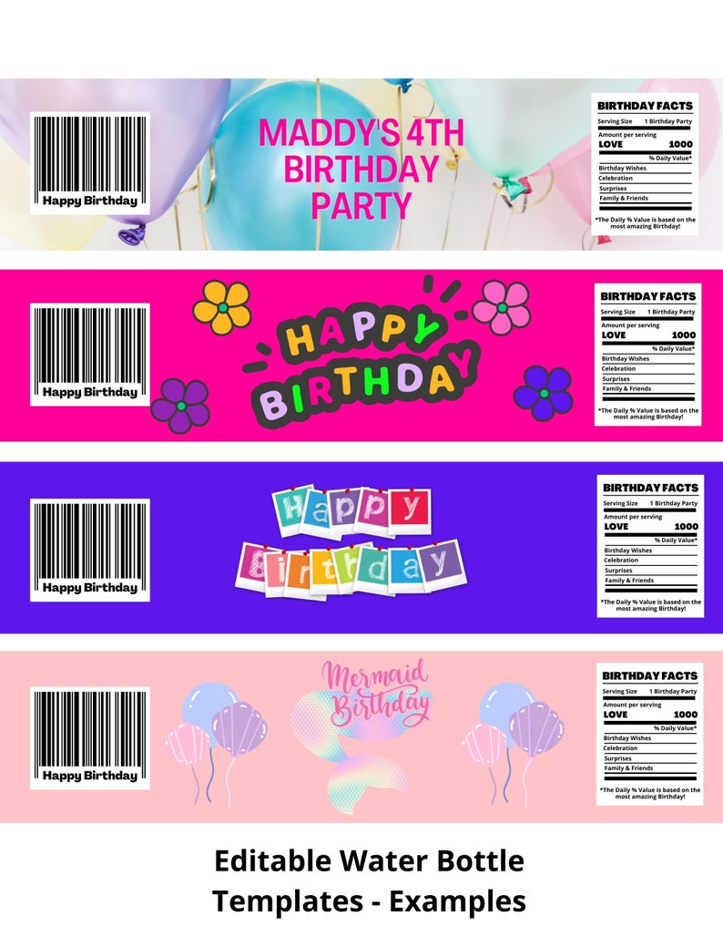 Water Bottle Labels Template BUNDLE 16 9 Oz 8oz Editable 500ml